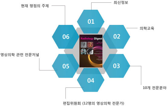 영상의학의 최신정보를 전달하고 지속적인 의학교육에 이바지하고자 10개 전문 분야, 총 12명의 영상의학 전문가로 구성된 편집위원회에서 영상의학 관련 전문저널에 최근 3개월간 보고된 논문 중 약 30편의 논문을 엄선하여 편집위원들의 논평과 함께 논문을 요약하여 게재합니다.Radiology Digest는